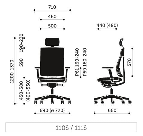 110 - oparcie wysokie siatkowe, z zagłówkiem (bez podpórki pod odcinek lędźwiowy kręgosłupa)