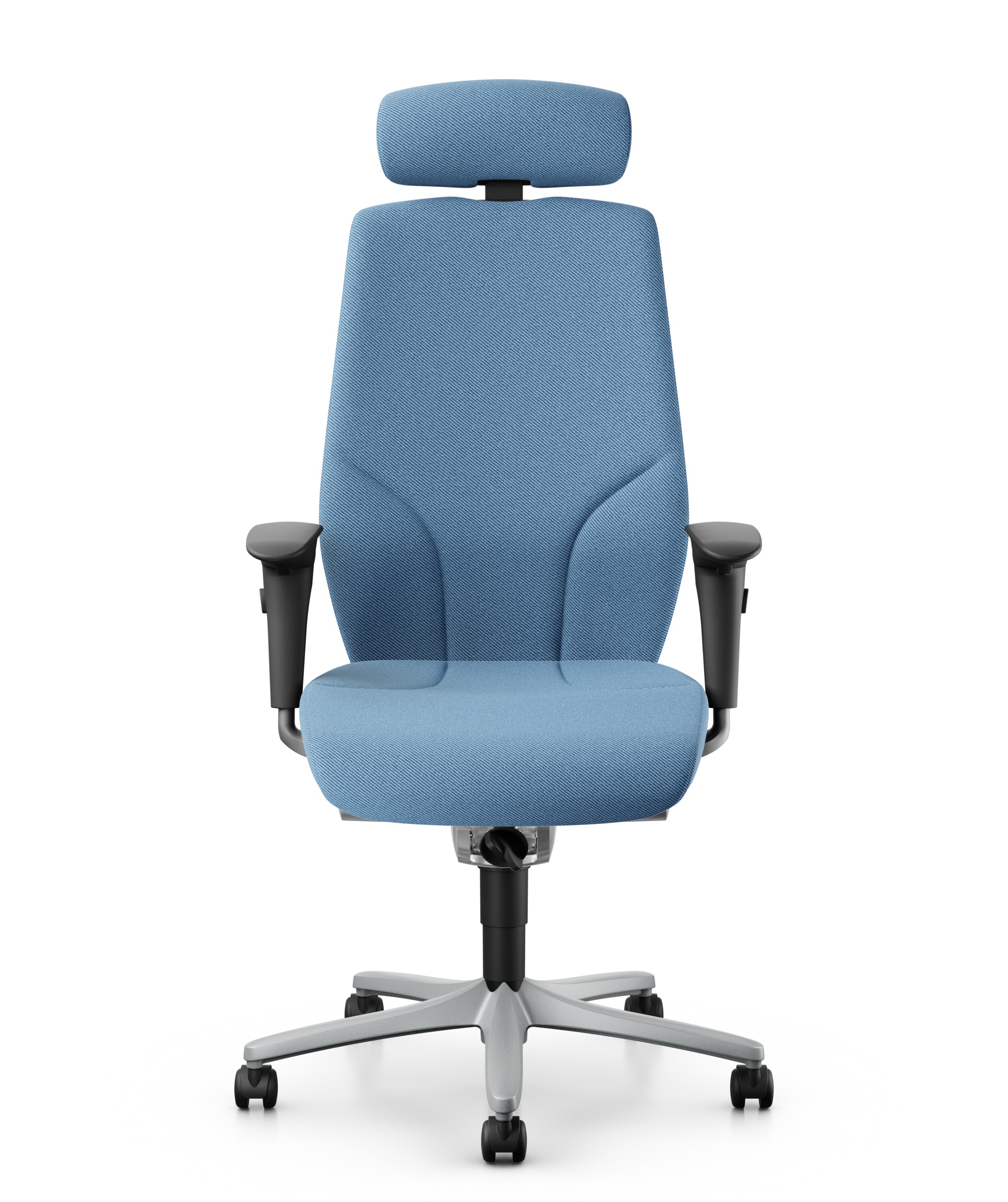 Giroflex 64-9878 - fotel gabinetowy z regulowanym zagłówkiem i szerszym siedziskiem, siedzisko, oparcie, tył oparcia tapicerowany