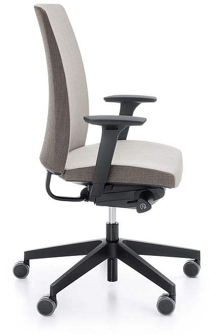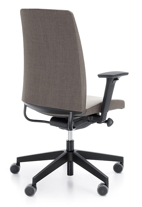 Nowe funkcjonalności dodane do kolekcji to opcja multiregulowanego zagłówka, co dodatkowo poprawia komfort użytkowania oraz regulowane na głębokość podparcie odcinka lędźwiowego kręgosłupa (schukra) w pełni zintegrowane z oparciem. Regulacja podparcia jest możliwa za pomocą estetycznego pokrętła umiejscowionego z boku oparcia.